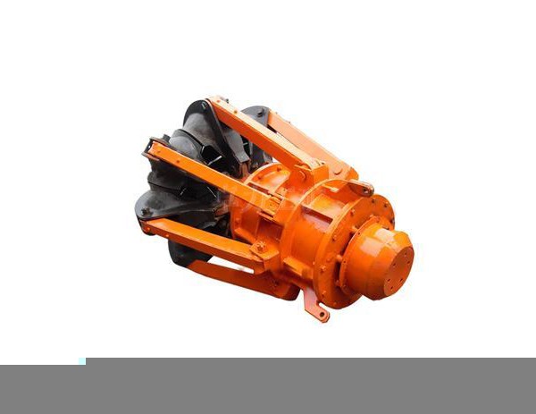 由氣動(dòng)機(jī)、減速器、卷筒、制動(dòng)器和繩輪機(jī)構(gòu)組成。懸吊抓斗的鋼絲繩一端固定在臂桿上,另一端經(jīng)動(dòng)滑輪引入臂桿兩端的定滑輪,并通過(guò)機(jī)架導(dǎo)向輪纏至卷筒。司機(jī)控制氣閥,氣動(dòng)機(jī)帶動(dòng)卷筒正轉(zhuǎn)或反轉(zhuǎn)以升降抓斗。制動(dòng)器與氣動(dòng)機(jī)同步動(dòng)作,當(dāng)氣動(dòng)機(jī)經(jīng)操縱閥引入壓氣時(shí),同時(shí)接通制動(dòng)閥氣缸松開(kāi)制動(dòng)帶,卷筒開(kāi)始轉(zhuǎn)動(dòng)。反之,當(dāng)氣動(dòng)機(jī)停止工作時(shí),制動(dòng)帶借彈簧張力張緊而制動(dòng)。除繩輪機(jī)構(gòu)外,整個(gè)提升機(jī)構(gòu)安裝在回轉(zhuǎn)盤(pán)以上的機(jī)架上,并設(shè)有防水保護(hù)罩。