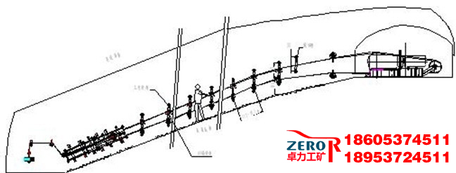 4、 斜巷內(nèi)上托輪間距為5米左右,底托輪間距為10米左右,在兩組線上標(biāo)定出固定位置。