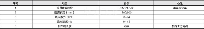 TX型銷齒推車機是由一列滑到內(nèi)運行的板鏈小車組成,板鏈小車底部在全長內(nèi)設置等距的銷軸,板鏈上安裝有操車使用的推爪和拉爪,推爪推礦車碰頭,拉爪拉礦車車軸,由液壓馬達驅動銷輪轉動,使整列板鏈小車前后運動。TX型銷齒推車機主要用于各種罐籠提升的礦井井上,下車場裝卸礦車和調(diào)運車輛,能夠實現(xiàn)裝罐、卸罐、調(diào)運、進罐推車、回程拉車等功能。 性能特點 1、反應靈敏,動作平穩(wěn),推力強勁,并可實現(xiàn)推力、推速靈活調(diào)整。 主要技術參數(shù)