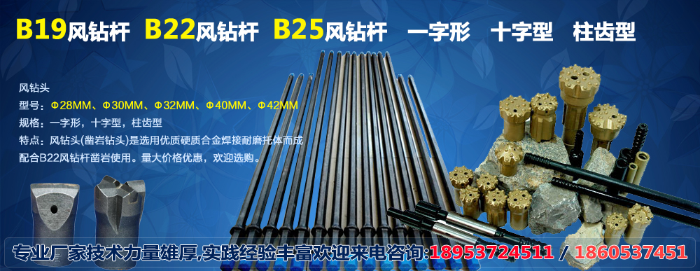 B19風(fēng)鉆桿/釬桿是各類釬桿中用途最廣的一種,在所有釬具中占比例最大。產(chǎn)品廣泛用于礦山、鐵路、公路、水利工程、煤礦、金屬礦、開山、采石及隧道工程。